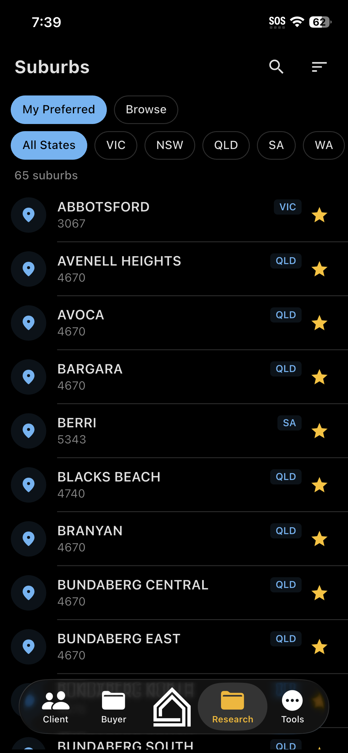 Off-market email parsing, AI-powered due diligence, 25-step deal checklists, 500+ suburb database, match scoring out of 100, and a Google-powered research assistant. Features no other buyer agent platform offers.
